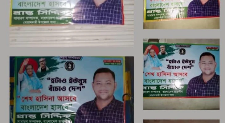 ফরিদপুরের বিভিন্ন এলাকায় গভীর রাতে নিষিদ্ধ ছাত্রলীগের পোস্টার-ফেস...
