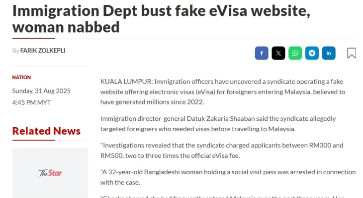 মালয়েশিয়ায় জাল ই-ভিসা সিন্ডিকেটে জড়িত অভিযোগে বাংলাদেশি নারী আটক