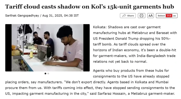 যুক্তরাষ্ট্রে পোশাকে ট্রাম্পের শুল্ক আঘাত, বিপাকে পশ্চিমবঙ্গের ১৫...