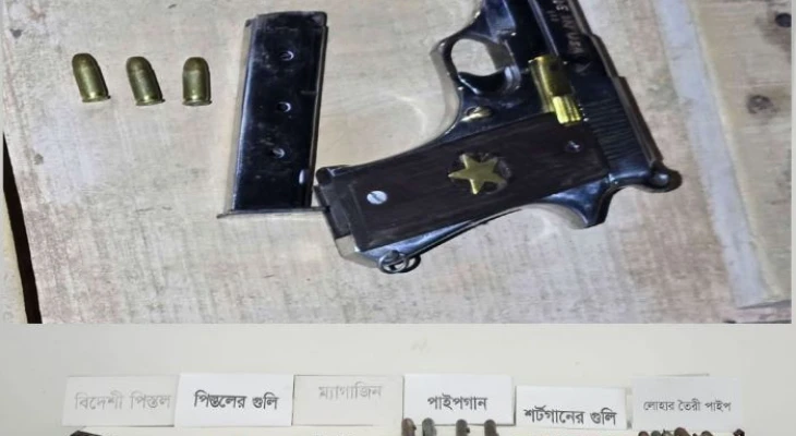 রাজশাহীর তানোরে বিদেশী পিস্তল ও বিপুল পরিমান অস্ত্র উদ্ধার