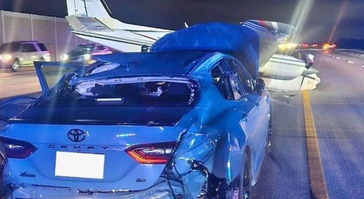 চলন্ত গাড়ির ওপর আছড়ে পড়ল বিমান