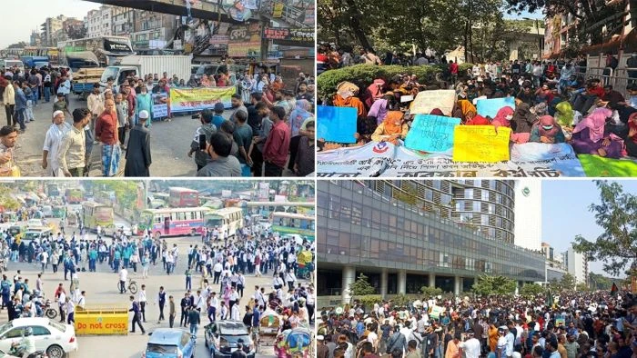 এর আগে গতকাল রোববার সকাল ১০টার দিকে বাংলাদেশ মোবাইল বিজনেস কমিউনিটির ব্যানারে আগারগাঁওয়ের বাংলাদেশ টেলিযোগাযোগ নিয়ন্ত্রণ কমিশন (বিটিআরসি) ভবনের সামনের সড়ক অবরোধ করেন মোবাইল ব্যবসায়ীরা। দুপুর ১টায় প্রস্তাবিত ঢাকা সেন্ট্রাল ইউনিভার্সিটির অধ্যাদেশ জারির দাবিতে শিক্ষাভবন ঘেরাও কর্মসূচি করেন সাত কলেজের শিক্ষার্থীরা। এ ছাড়া সাত কলেজ নিয়ে গঠন হতে যাওয়া ঢাকা সেন্ট্রাল ইউনিভার্সিটি প্রস্তাবিত ‘স্কুলিং কাঠামো’ বাতিল করার দাবিতে শাহবাগ মোড় আটকে বিক্ষোভ করেন উচ্চমাধ্যমিক পর্যায়ের শিক্ষার্থীরা।