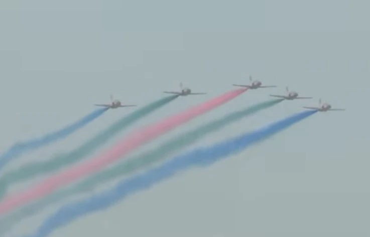 এর কয়েক মিনিট পর আবার পাঁচটি উড়োজাহাজ আসছে রং ছড়াতে ছড়াতে। পরে এগুলো রং ছড়াতে ছড়াতে পাঁচ দিকে চলে যায়।