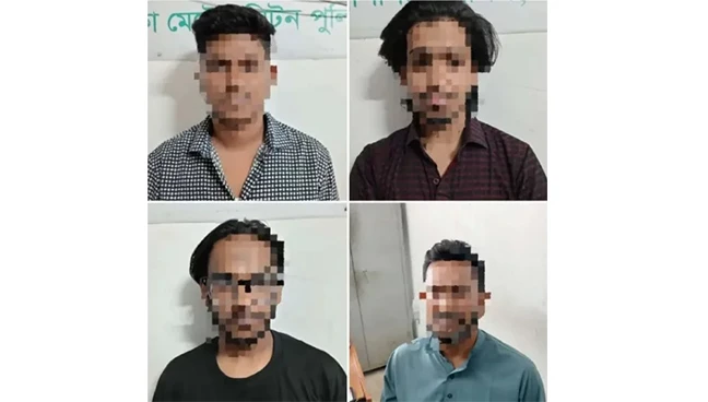গ্রেপ্তারকৃতরা হলেন- আরমান হক বিপু ওরফে যুব (২১), মো. ইসমাঈল হোসেন ফাহিম ওরফে শাফিন (২১), কামরুল ইসলাম রানা (৩০) এবং আলী হোসেন (৫০)।