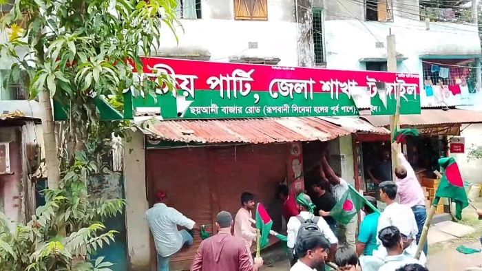 শনিবার (৩০ আগস্ট) সকাল সাড়ে ১১টার দিকে টাঙ্গাইল শহরের থানার পাশে ছয় আনি বাজার রোডে অবস্থিত জাতীয় পার্টির জেলা কার্যালয়ে এ ঘটনা ঘটে।