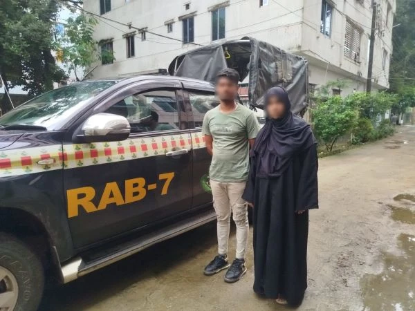 র‌্যাব-৭, চট্টগ্রাম গোপন সংবাদের ভিত্তিতে জানতে পারে যে, কতিপয় মাদক ব্যবসায়ী মাদকদ্রব্য গাঁজা বিক্রয়ের উদ্দেশ্যে ফেনী রেলওয়ে ষ্টেশন এলাকায় অবস্থান করছে। উক্ত তথ্যের ভিত্তিতে গত ০৫ অক্টোবর ২০২৫ইং তারিখে আনুমানিক ১০:৩০ ঘটিকায় র‌্যাব-৭ চট্টগ্রামের একটি আভিযানিক দল ফেনী রেলওয়ে ষ্টেশননের প্লাটফর্মের এলাকায়  পৌছালে র‌্যাবের উপস্থিতি টের পেয়ে ০২ (দুই) জন ব্যক্তি কৌশলে পালিয়ে যাওয়ার চেষ্টা কালে র‌্যাব সদস্যরা আসামী ১। জাহেদ হোসেন (২৩), পিতা- নুর হোসাইন, সাং-জাইদি মোড়া নয়াপাড়া, থানা-টেকনাফ, জেলা-কক্সবাজার এবং ২। আয়েশা আক্তার (৪৪), স্বামী- মৃত উসমান গনি, সাং-কক্সবাজার পাহাড়তলী, থানা-কক্সবাজার সদর, জেলা-কক্সবাজার আটক করতে সক্ষম হয়। পরবর্তীতে আটককৃত আসামীদের জিজ্ঞাসাবাদ ও তল্লাশীকালে  তাদের সাথে থাকা ০২টি  ব্যাগে বিশেষ কৌশলে কসটেপ দ্বারা মোড়ানো ০৫টি বান্ডিলের ভিতর হতে সর্বমোট ১৮ কেজি গাঁজা উদ্ধারসহ আসামীদের গ্রেফতার করা হয়।