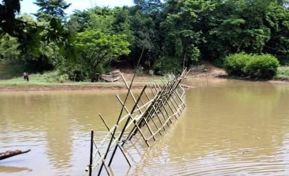 দোয়ারাবাজারে অবৈধ বালু উত্তোলন বন্ধে নদীতে বাঁশের বেড়া