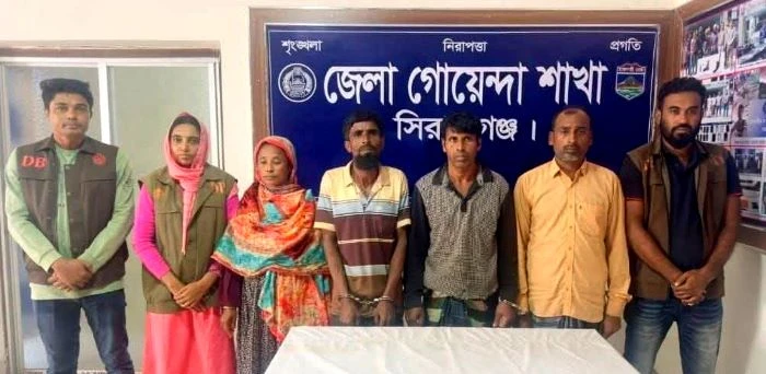 আসামীরা হলো, সলঙ্গা থানার চর ফরিদপুর গ্রামের মো. আব্দুল গফুর শেখের ছেলে মো. মাসুদ রানা (৩৮), একই গ্রামের আব্দুল মান্নান মন্ডলের ছেলে মো. ফরিদুল ইসলাম (৪২), প্রবাসী মতিউর রহমান মতির স্ত্রী মোছা. শাহিনুর খাতুন (৪০) ও দোস্তপাড়া গ্রামের মৃত মন্তাজ আলীর ছেলে ভিকটিম খতিবের ভগ্নিপতি মো. রফিকুল ইসলাম (৪০)।