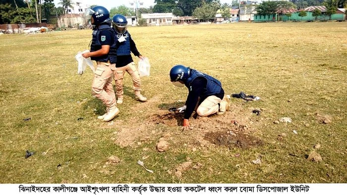 কালীগঞ্জে উদ্ধার হওয়া ককটেল ধ্বংস করলো পুলিশের বোমা ডিসপোজাল ইউনিট