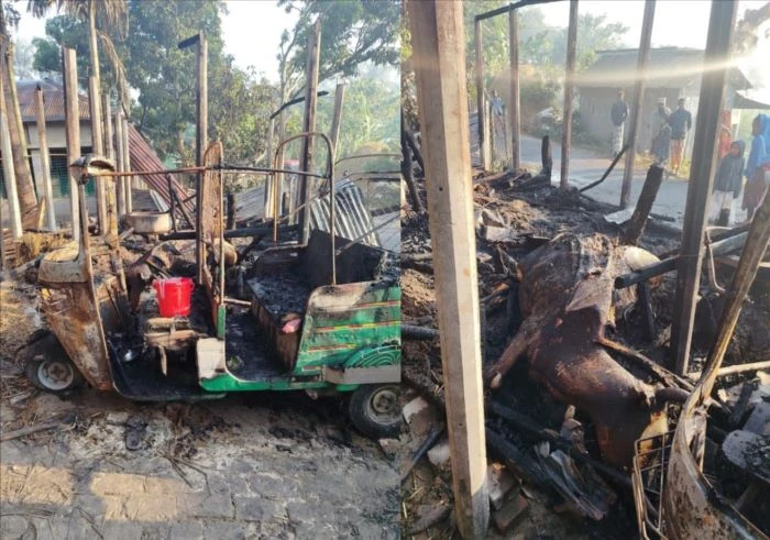 নাটোরে অগ্নিকান্ডে সিএনজি অটোরিক্সা ও ৫ গবাদিপশু সহ বসতবাড়ি পুড়ে ছাই