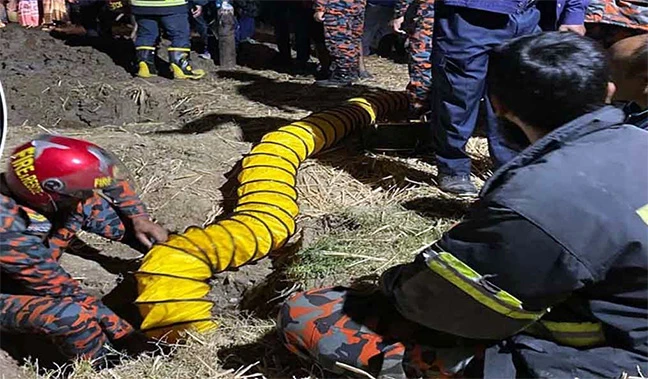 রাজশাহীর তানোরে প্রায় ৩০ ফুট গভীর নলকূপে পড়ে যাওয়া শিশুটিকে উদ্ধারে চেষ্টা চালিয়ে যাচ্ছে ফায়ার সার্ভিস। এ ছাড়া খননযন্ত্র দিয়ে মাটি খোঁড়ার কাজ করা হচ্ছে। পাশাপাশি শিশুটিকে বাঁচিয়ে রাখতে অক্সিজেন সরবরাহও অব্যাহত রাখা হয়েছে।