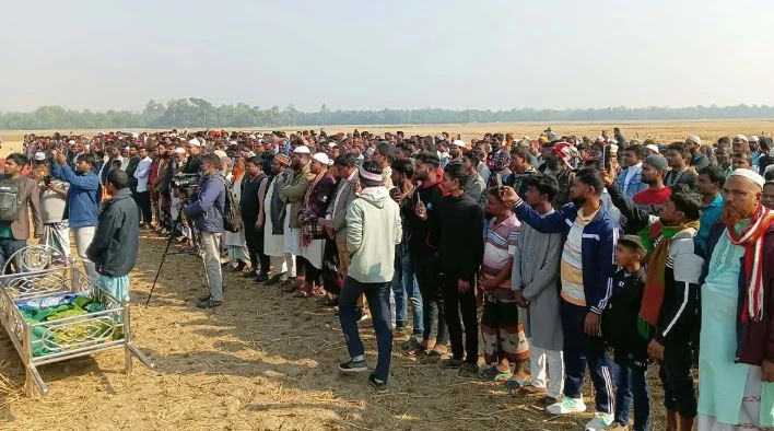 জানাজা শেষে সাজিদের ছোট্ট কফিনটা যখন কবরের দিকে নেওয়া হলো, তখন বাতাস যেন থেমে গেল, শুধু শোনা যাচ্ছিল কান্নার শব্দ। কান্না করছেন স্বজনরা। একটি শিশুর জানাজা— যেখানে অংশ নিয়েছে পুরো গ্রাম, এমন দৃশ্য কেউ কখনো দেখেনি গ্রামবাসী।