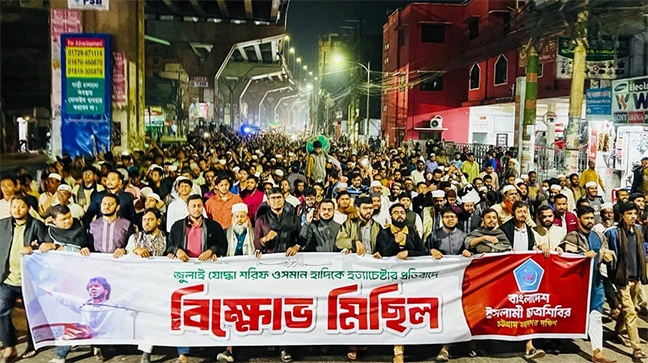 চট্টগ্রামে বিক্ষোভ মিছিল: ওসমান হাদির ওপর গুলিবর্ষণের প্রতিবাদে চট্টগ্রামে বিক্ষোভ মিছিল হয়েছে। নগরীর বিভিন্ন স্থানে পৃথক মিছিল করেছে 'বীর চট্টলার ছাত্র-জনতা', ইসলামী ছাত্র শিবির, ছাত্রদলসহ বিভিন্ন সংগঠন। সন্ধ্যায় ‘বীর চট্টলার ছাত্র-জনতা’ ব্যানারে নগরীর দুই নম্বর গেট এলাকায় জড়ো হন শতাধিক তরুণ। সেখান থেকে মিছিল নিয়ে তারা ওয়াসা মোড়ের দিকে যান।