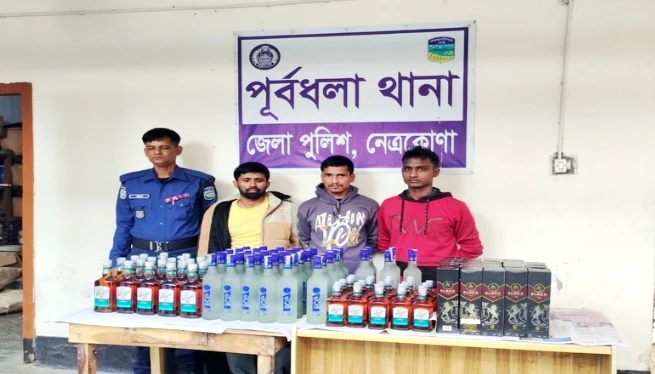 পূর্বধলায় পুলিশের অভিযানে ভারতীয় ১০২ বোতল মদসহ গ্রেপ্তার ৩