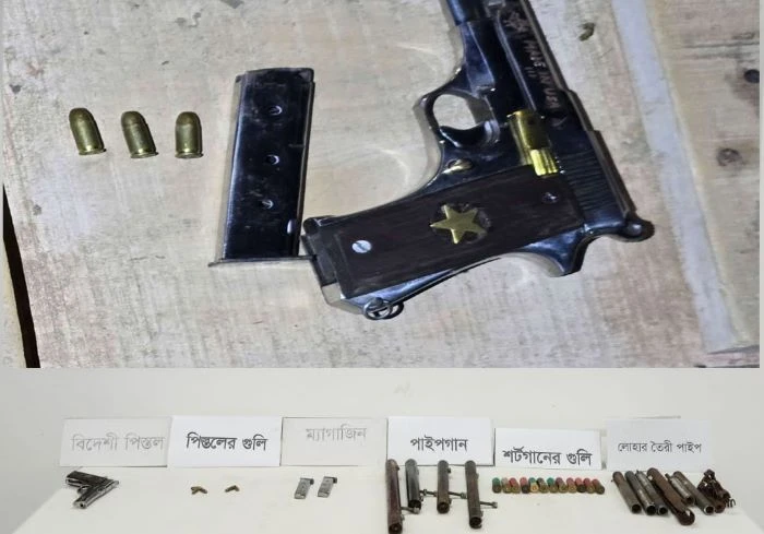 রাজশাহীর তানোরে বিদেশী পিস্তল ও বিপুল পরিমান অস্ত্র উদ্ধার