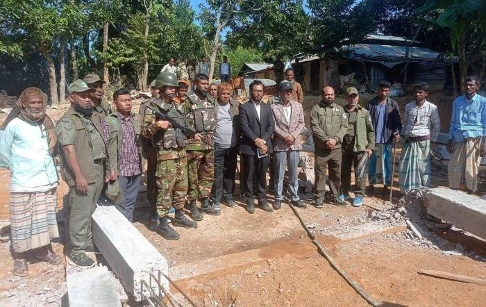 এ সময় বাংলাদেশ সেনাবাহিনী, বাঁশখালী থানা পুলিশ, উপজেলা ভূমি অফিসের কর্মকর্তা ও কর্মচারীবৃন্দ ও বন বিভাগের জলদী অভয়ারণ্য রেঞ্জের চাম্বল বনবিট, বনবিট নাপোড়া ও বনবিট পুঁইছড়ি এর দায়িত্বশীল সহ জলদী রেঞ্জের কর্মকর্তা আনিসুজ্জামান শেখ, বাঁশখালী ইকোপার্কের ভারপ্রাপ্ত রেঞ্জ কর্মকর্তা মো: ইসরাইল হক সহ উপস্থিত ছিলেন।স্থানীয় ও বনবিভাগ সুত্রে জানা যায়, পুঁইছড়ি ইউনিয়নের ৫ নং ওয়ার্ডের বন বিভাগের সংরক্ষিত এলাকায় বনের জায়গা দখল করে বাড়ি নির্মাণ করে আব্দুল মান্নান নামের এক ব্যক্তি। সে বাড়ি নির্মাণ শুরু থেকে বনবিভাগ একাধিকবার অভিযান ও মামলা দেওয়া হলেও সে বাড়ি নির্মাণ অভ্যাহত রাখে।