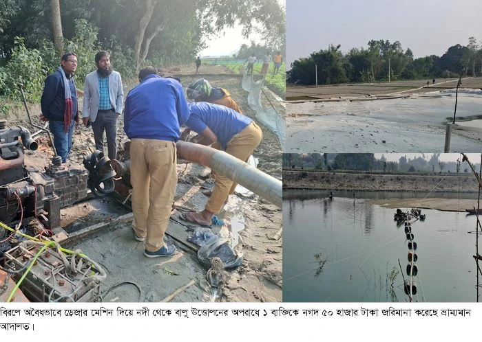 এম, এ কুদ্দুস, বিরল (দিনাজপুর) প্রতিনিধি: দিনাজপুরের বিরলে ড্রেজার মেশিন দিয়ে নদী থেকে অবৈধভাবে বালু উত্তোলনের অপরাধে ১ ব্যক্তিকে নগদ ৫০ হাজার টাকা জরিমানা করেছে ভ্রাম্যমান আদালত।