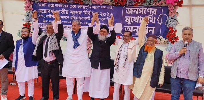 জহিরুল ইসলাম শিবলু, লক্ষ্মীপুর প্রতিনিধি: লক্ষ্মীপুরে আসন্ন ত্রয়োদশ জাতীয় সংসদ নির্বাচন ও গণভোট ২০২৬ এ জনগণের মুখোমুখি অনুষ্ঠানে সুজন (সুশাসনের জন্য নাগরিক) এর আয়োজনে লক্ষ্মীপুর-৩ আসন নির্বাচনী এলাকায় একই মঞ্চে উঠেছেন প্রতিবন্ধী ৬ জন প্রার্থী।