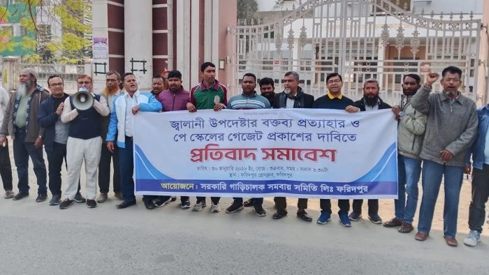 ন্যায্য অধিকার আদায়ে রাজপথে নামলেন ফরিদপুরের সরকারি গাড়ি চালকরা