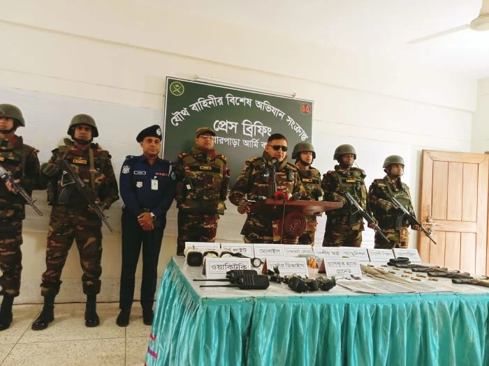আজিজুল ইসলাম, যশোর: জাতীয় সংসদ নির্বাচনের ঠিক আগ মুহূর্তে যশোরের বাঘারপাড়ায় একটি বাড়িতে অভিযান চালিয়ে ১০টি শক্তিশালী গ্রেনেড ও তিনটি বিদেশি পিস্তলসহ বিপুল পরিমাণ অস্ত্র ও গোলাবারুদ উদ্ধার করেছে যৌথ বাহিনী। গোপন সংবাদের ভিত্তিতে চালানো এই অভিযানে বড় ধরনের নাশকতার পরিকল্পনা নস্যাৎ করা হয়েছে বলে ধারণা করছে আইনশৃঙ্খলা রক্ষাকারী বাহিনী।