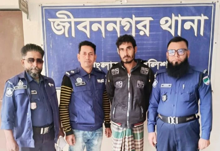জামাল হোসেন খোকন, জীবননগর (চুয়াডাঙ্গা): চুয়াডাঙ্গার জীবননগরে যাবজ্জীবন দণ্ডপ্রাপ্ত পলাতক আসামি সুমন খাঁ ওরফে সুমন আহম্মদকে গ্রেফতার করেছে জীবননগর থানা পুলিশ।