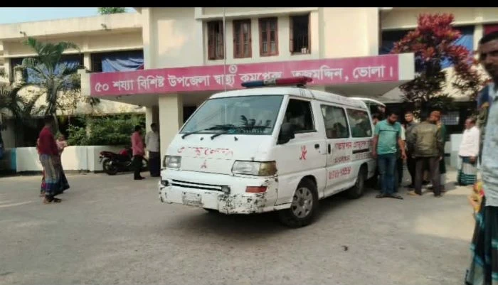 হাসপাতালের আরএমও ডাঃ শামসুল আলম সোহেল বলেন, রক্তাক্ত অবস্থায় ২৫ বছর বয়সী এক নারীকে হাসপাতালে আনা হয়েছে। তাকে পরীক্ষা নিরীক্ষা করার জন্য ভোলা সদর হাসপাতালে স্থানান্তর করা হয়েছে।