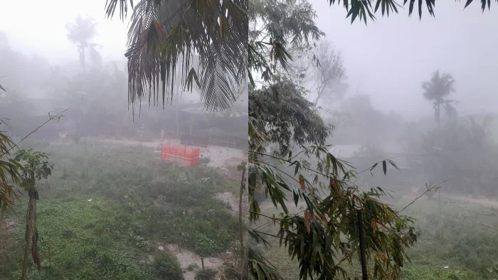 ভোর থেকে আকাশ ও প্রকৃতি ঘন কুয়াশায় আচ্ছন্ন হয়ে পড়ে। মাঠ, নদী, গাছপালা এবং ঘরবাড়ি সবকিছু যেন সাদা কুয়াশার চাদরে ঢেকে যায়। টুপটাপ করে পড়তে থাকে শিশির। কুয়াশা ও শিশিরে ভেজা ঘাস আর গাছের পাতায় তৈরি হয় মনোরম দৃশ্য। অনেকেই বলছেন, দৃশ্যটি যেন নতুন করে শীত ফিরে আসারই ইঙ্গিত দিচ্ছে।