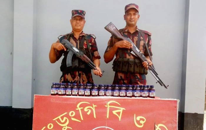 বিরল সীমান্তে বিজিবি’র বিশেষ অভিযানে বিপুল পরিমান ভারতীয় স্কাফ সিরাপ উদ্ধার