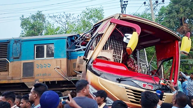 কুমিল্লা: কুমিল্লার সদর দক্ষিণ উপজেলায় ট্রেন-বাস সংঘর্ষে অন্তত ১২ জন নিহত এবং বেশ কয়েকজন আহত হয়েছে। গতকাল শনিবার (২২ মার্চ) দিবাগত রাত ৩টার দিকে সদর দক্ষিণ উপজেলার পদুয়ার বাজার লেভেল ক্রসিং এলাকায় এই দুর্ঘটনা ঘটে।