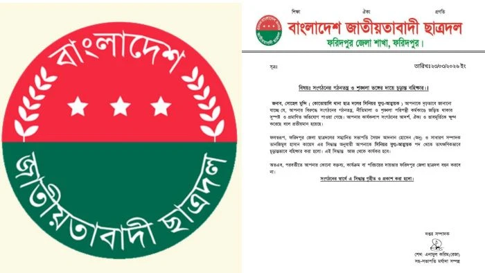 ফরিদপুর জেলা ছাত্রদলের সভাপতি সৈয়দ আদনান হোসেন (অনু) ও সাধারণ সম্পাদক তানজিমুল হাসান কায়েসের যৌথ সিদ্ধান্ত অনুযায়ী তাকে সিনিয়র যুগ্ম-আহ্বায়ক পদ থেকে তাৎক্ষণিকভাবে চূড়ান্ত বহিষ্কার করা হয়। একই সঙ্গে জানানো হয়েছে, এ সিদ্ধান্ত বহিষ্কারের দিন থেকেই কার্যকর বলে গণ্য হবে।