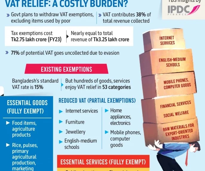 অধিকাংশ পণ্য–সেবায় ভ্যাট অব্যাহতি তুলে নেওয়ার পরিকল্পনা, ছাড় পাবে শুধু দরিদ্রতম ৪০ শতাংশ মানুষ