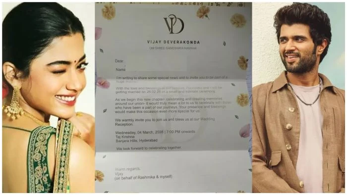 দক্ষিণী সিনেমার জনপ্রিয় জুটি বিজয় দেবরকোন্ডা ও রাশমিকা মান্দানার প্রেম ও বিয়ের গুঞ্জন নতুন মোড় নিয়েছে। এবার সামাজিক যোগাযোগমাধ্যমে ভাইরাল হয়েছে তাদের কথিত বিয়ের নিমন্ত্রণপত্র। কার্ড অনুযায়ী, চলতি মাসের ২৬ তারিখেই সাতপাকে বাঁধা পড়ছেন তারা।