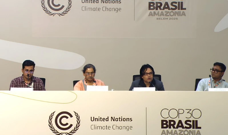 ব্রাজিলের অ্যামাজনের বেলেমে চলমান বৈশ্বিক জলবায়ু সম্মেলনে (কপ-৩০) প্রেস কনফারেন্স ভেন্যুতে এক সংবাদ সম্মেলনের মাধ্যমে এসব কথা জানানো হয় বলে বুধবার (১২ নভেম্বর) ঢাকায় প্রাপ্ত এক সংবাদ বিজ্ঞপ্তিতে জানানো হয়েছে।