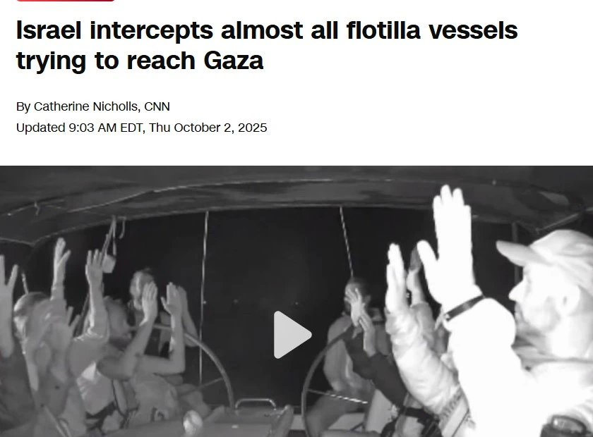 এর আগে বার্তা সংস্থা এএফপির এক খবরে বলা হয়, বিভিন্ন দেশের রাজনীতিক ও অধিকারকর্মীকে নিয়ে প্রায় ৪৫টি জাহাজের একটি বহর যুদ্ধবিধ্বস্ত গাজার উপকূলে রওনা হয়। সেখানে বাংলাদেশের অধিকারকর্মী এবং আলোকচিত্রি শহিদুল আলম, সুইডিশ জলবায়ু আন্দোলন কর্মী গ্রেটা থুনবার্গও আছেন। গত মাসে স্পেন থেকে যাত্রা শুরু করা এই ফ্লোটিলার লক্ষ্য গাজা অবরোধ ভেঙে সেখানে ত্রাণ পৌঁছানো।
