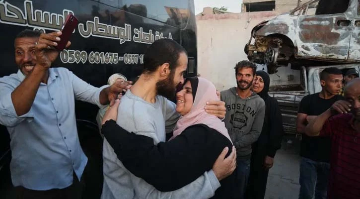 ইসরায়েলে বন্দিজীবন থেকে মুক্তি পাওয়া ফিলিস্তিনিরা নিজ নিজ ঘরে ফিরছেন। গাজায় ফেরার পর নিজেদের পরিবার-পরিজনদের দেখে তারা আবেগে আপ্লুত হয়ে পড়ছেন।