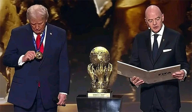 ইনফান্তিনো ট্রাম্পের হাতে পদক তুলে দেন এবং প্রদত্ত সার্টিফিকেট থেকে কিছু অংশ পড়ে শোনান। সার্টিফিকেটে উল্লেখ ছিল—বিশ্বের কোটি কোটি ফুটবলভক্তের পক্ষ থেকে এই স্বীকৃতি দেওয়া হয়েছে।