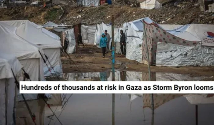 ভারি বৃষ্টিপাত এবং তীব্র বাতাসের সাথে ফিলিস্তিনের গাজার দিকে অগ্রসর হচ্ছে শক্তিশালী ঝড় ‘বায়রন’। এতে উপত্যকার লাখ লাখ বাস্তুচ্যুত ফিলিস্তিনি নতুন দুর্যোগের মুখে পড়তে পারে বলে আশঙ্কা করা হচ্ছে। বুধবার এক প্রতিবেদনে এ খবর জানিয়েছে আল জাজিরা।