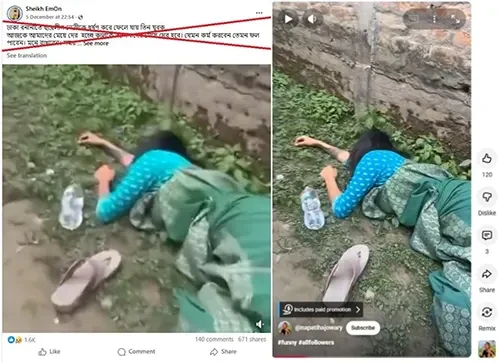 বাংলাদেশে সাবেক প্রধানমন্ত্রী শেখ হাসিনা ও তার দল আওয়ামী লীগকে ক্ষমতাচ্যুত করা গণঅভ্যুত্থানের পর প্রথম জাতীয় নির্বাচন ফেব্রুয়ারিতে হওয়ার কথা। এই প্রেক্ষাপটে অনলাইনে ভুয়া ও বিভ্রান্তিকর তথ্যের ঢল নেমেছে। এর মধ্যে একটি ভুয়া ভিডিও ছড়ানো হয়েছে। তাতে ভুলভাবে দাবি করা হয়েছে যে, সাবেক শাসকদলের ছাত্রসংগঠনের এক নেত্রীকে ‘ধর্ষণ করে ফেলে রাখা হয়েছে’। বাস্তবে ভিডিওটি একজন ভারতীয় কমেডি ইউটিউবার আপলোড করেন। সেখানে এক নারীকে মদ্যপ অবস্থার অভিনয় করতে দেখা যায়।
