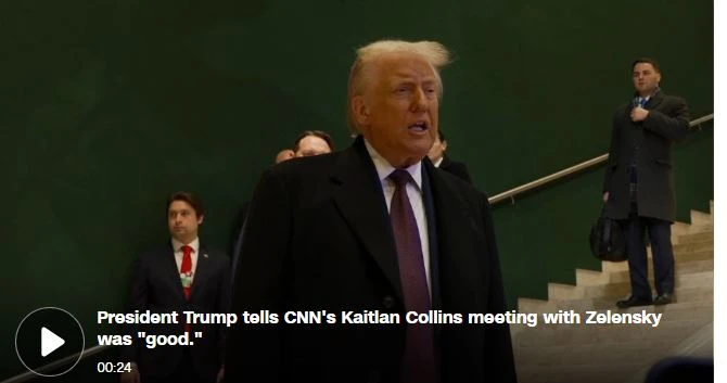সিএনএন: • ইউক্রেন আলোচনা: সুইজারল্যান্ডের দাভোসে ইউক্রেনের রাষ্ট্রপতি ভলোদিমির জেলেনস্কির সাথে বৈঠকের পর, মার্কিন প্রেসিডেন্ট ডোনাল্ড ট্রাম্প বলেছেন যে রাশিয়ার যুদ্ধ শেষ করার জন্য এখনও "অনেক পথ বাকি"। মার্কিন প্রতিনিধিদলের সাথে সাক্ষাতের পর, রাশিয়ার নেতা ভ্লাদিমির পুতিন বলেছেন যে আঞ্চলিক সমস্যাগুলি সমাধান না করে "দীর্ঘমেয়াদী নিষ্পত্তি" হবে না, ক্রেমলিনের একজন কর্মকর্তার মতে।
