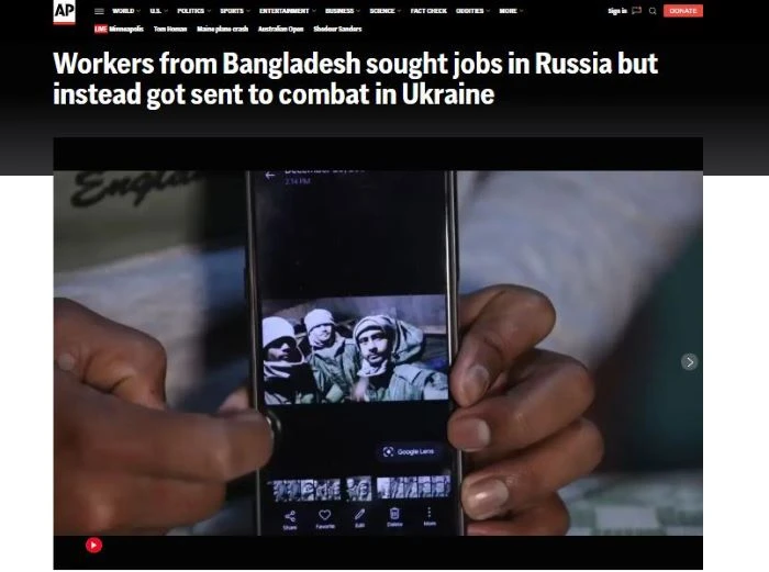 এপি জানায়, বাংলাদেশি শ্রমিকদের বেসামরিক চাকরির মিথ্যা আশ্বাস দিয়ে রাশিয়ায় আনা হয়। পরে জোরপূর্বক তাদের যুদ্ধে নামানো হয়। অনেককে হুমকি দেওয়া হয় কারাদণ্ড, মারধর কিংবা মৃত্যুর ভয় দেখিয়ে।