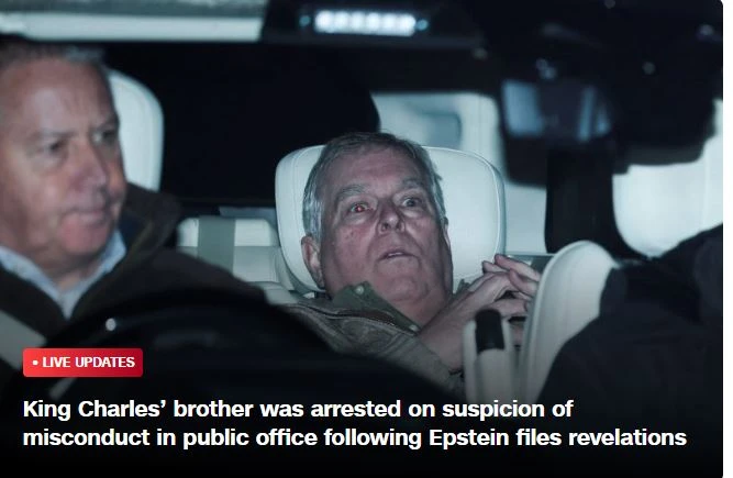 পুলিশ জানিয়েছে, ৬৬তম জন্মদিনে, সরকারি পদে অসদাচরণের সন্দেহে অ্যান্ড্রু মাউন্টব্যাটেন-উইন্ডসরকে গ্রেপ্তার করেছে পুলিশ।