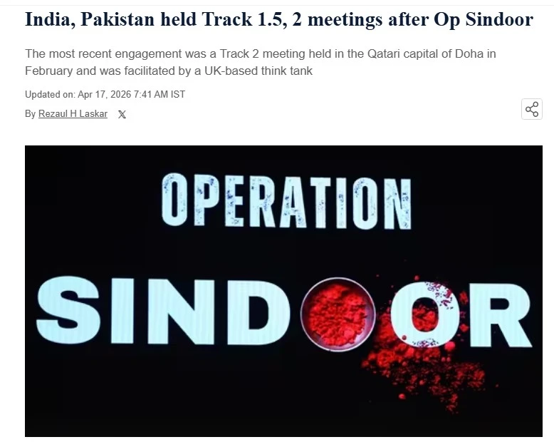 অপারেশন সিঁদুরের পর গত বছর পাকিস্তানের সঙ্গে গোপনে বৈঠক করেছে ভারত। সংশ্লিষ্ট সূত্রের বরাতে হিন্দুস্তান টাইমসের এক খবরে বলা হয়, ২০২৫ সালের মে মাসে ভারত-পাকিস্তান যুদ্ধের দুই মাস পর দুই দেশের কৌশলবিদ, সংসদ সদস্য এবং সাবেক কূনীতিকরা একাধিক আধা-আনুষ্ঠানিক এবং অনানুষ্ঠানিক বৈঠকে মিলিত হন। প্রতিটি বৈঠক অত্যন্ত গোপনীয়তা মেনে আয়োজন করা হয়।