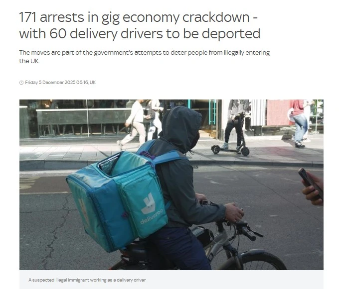 নভেম্বর মাসের টানা সাত দিনের হোম অফিসের বিশেষ জাতীয় অভিযানে তাদেরকে গ্রেপ্তার করা হয়। অবৈধভাবে কাজ করা ডেলিভারি ড্রাইভাররাই ছিল হোম অফিসের টার্গেট। অভিযানে মোট ১৭১ জনকে আটক করা হয়। মূলতঃ স্বরাষ্ট্রমন্ত্রী শাবানা মাহমুদের ''ডিগ ইকোনোমি''-তে অবৈধভাবে কাজের বিরুদ্ধে কঠোর অবস্থানের অংশই এই অভিযান।