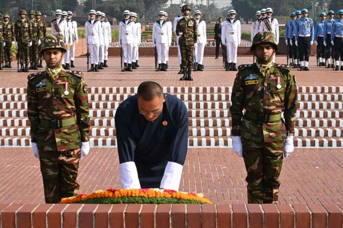 মনিরুল ইসলাম : ভুটানের প্রধানমন্ত্রী শেরিং তোবগে ঢাকায় আসার পর মুক্তিযুদ্ধের শহীদদের প্রতি শ্রদ্ধা জানাতে ঢাকার সাভারে জাতীয় স্মৃতিসৌধে পুষ্পস্তবক অর্পণ করেন । এছাড়া স্মৃতিসৌধ প্রাঙ্গণে একটি বৃক্ষরোপণ করেছেন তিনি।