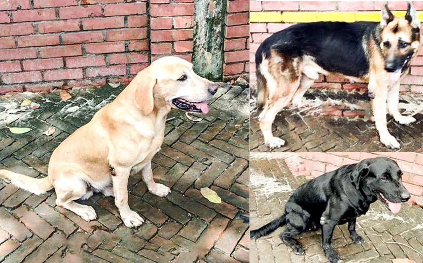 কুকুর তিনটির মধ্যে ফিন পুরুষ ল্যাব্রাডর, কোরি স্ত্রী ল্যাব্রাডর এবং স্যাম পুরুষ জার্মান শেফার্ড। যুক্তরাজ্য থেকে আনা এই কুকুরগুলো তাদের কর্মজীবনে মাদক ও বিস্ফোরক শনাক্তকরণসহ নানা গুরুত্বপূর্ণ দায়িত্ব পালন করেছে। উৎস: আজকের পত্রিকা।