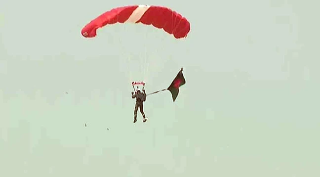প্যারাট্রুপার প্রদর্শনীতে অংশ নেন ‘টিম বাংলাদেশ’-এর ৫৪ জন প্যারাট্রুপার। এই ঐতিহাসিক আয়োজন প্রত্যক্ষ করেন প্রধান উপদেষ্টা অধ্যাপক ড. মুহাম্মদ ইউনূস।