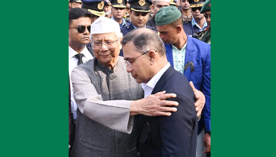 খালেদা জিয়ার জানাজায় তারেক রহমানকে সান্ত্বনা জানালেন প্রধান উপদেষ্টা