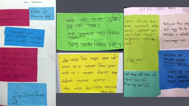 বাসস।। ‘ভোটের গাড়ি’র প্রচারণায় রাখা ‘জনমত বাক্স’ এ নিজেদের মনের কথা লিখে জানিয়েছেন দেশের সাধারণ মানুষ। কেউ লিখেছেন ব্যক্তিগত দুঃখের কথা, কেউ চেয়েছেন হয়রানিমুক্ত জনসেবা ও রাষ্ট্রযন্ত্রের সংস্কার। আবার কেউ জুলাই হত্যাকাণ্ডের বিচার, নারী-পুরুষের সমতা, শিশুর জন্য নিরাপদ পরিবেশ, মানসম্মত শিক্ষা এবং দুর্নীতিমুক্ত ও আধিপত্যহীন বাংলাদেশের দাবি জানিয়েছেন। এর পাশাপাশি সরকারের সমালোচনা ও ব্যক্তিগত আক্রমণও এসেছে কিছু মন্তব্যে।