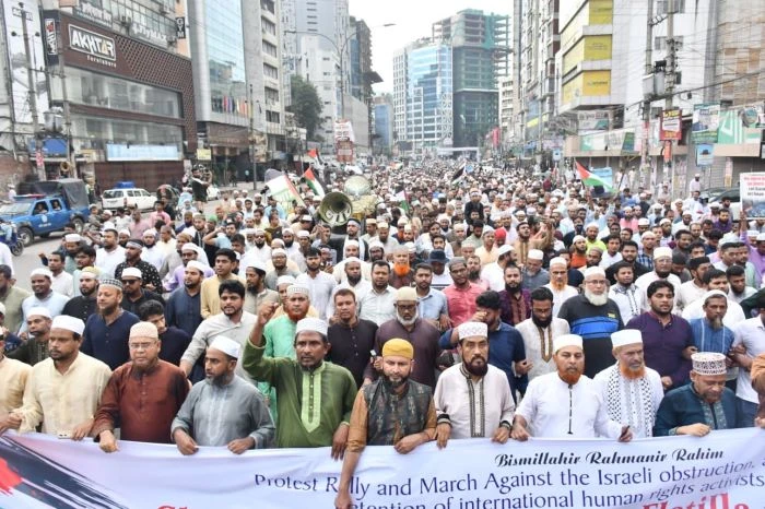 সমাবেশ শেষে, বায়তুল মোকাররম মসজিদের উত্তর গেইট থেকে এক বিশাল প্রতিবাদ মিছিল বিজয়নগর-কাকরাইল হয়ে শান্তিনগর মোড়ে গিয়ে শেষ হয়। এসময় হাজার-হাজার তৌহিদী জনতা মিছিলে অংশগ্রহন করে গাজায় ত্রানবাহী জাহাজ গ্লোবাল সুমুদ ফ্লোটিলায় ইসরায়েলের আক্রমণ, হামলা ও বিশ্বের মানবাধিকার কর্মীদের গ্রেফতারের প্রতিবাদ জানায়।