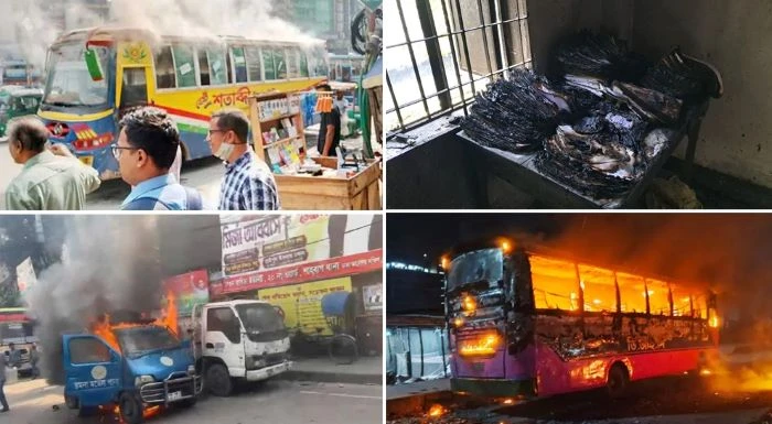 গতকাল সন্ধ্যায় রাজধানীর দোলাইরপাড় মোড়ে একটি যাত্রীবাহী বাসে আগুন দেওয়া হয়। খবর পেয়ে ফায়ার সার্ভিসের দুটি ইউনিট আগুন নিয়ন্ত্রণে আনে। তবে এ ঘটনায় কেউ হতাহত হয়নি বলে জানা গেছে। এর আগে দুপুর সাড়ে ১২টার পর মিরপুর-১ নম্বরে সনি সিনেমা হলের সামনে মোটরসাইকেলে কয়েকজন এসে শতাব্দী পরিবহনের একটি বাসে আগুন দেয়। একই দিন সকাল ১০টার দিকে নির্বাচন কমিশন (ইসি) ভবনের পাশের স্বর্ণালি চত্বরে বিস্ফোরকযুক্ত চারটি পটকা উদ্ধার করে পুলিশ।